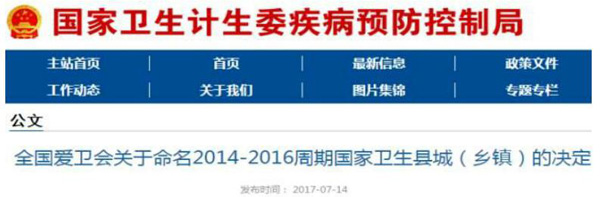 ③、白沙縣:2016年至2017年期間(2015年也是我公司負責病媒防制工作)參與白沙縣創(chuàng)建國家衛(wèi)生縣城,于2017年通過國家衛(wèi)生縣城國家病媒專家技術(shù)評估組的達標考核驗收,并于當年獲得“國家衛(wèi)生縣城”榮譽稱號。