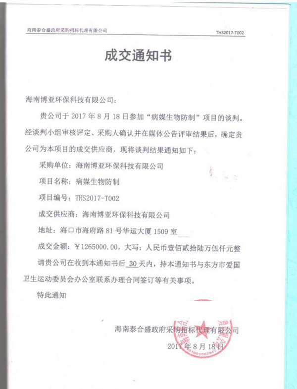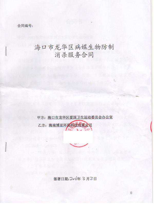 海南博亞環(huán)??萍加邢薰境闪⒂?010年,是一家集病媒生物防治,有害生物藥械開發(fā)及銷售和環(huán)境消毒,參與城市(縣城)創(chuàng)建國家衛(wèi)生城市(縣城)通過率及知名度高的省級企業(yè)。為適應(yīng)市場的需求和選擇,我公司配備有先進的器械及藥物。我公司有多名技術(shù)人員曾參與廣東、廣西、江西、安徽、海南等省一些城市的創(chuàng)衛(wèi)工作,對創(chuàng)建省級或國家級衛(wèi)生城市(縣城)的流程和技術(shù)操作方面有著豐富經(jīng)驗。公司聘請武漢大學基礎(chǔ)醫(yī)學院教授、研究員、中國衛(wèi)生有害生物防制協(xié)會專家委員會委員蔣洪教授以及安微醫(yī)科大學操基玉教授作為公司技術(shù)總顧問。公司本著除害防病,服務(wù)大眾的經(jīng)營理念向社會體現(xiàn)自身價值。